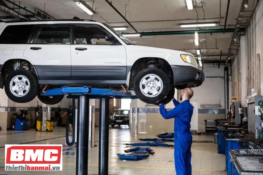 Sửa chữa gầm xe: Cầu nâng 2 trụ là lý tưởng nhờ khả năng tiếp cận toàn bộ gầm xe và giá thành hợp lý.