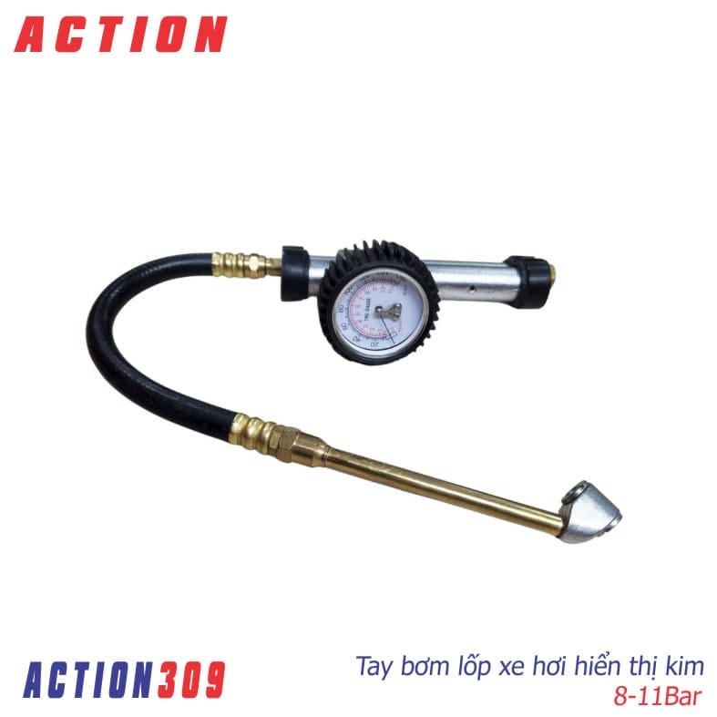 Tay bơm lốp Action 309 – hay còn gọi là Đồng hồ bơm lốp Action 309 – là sản phẩm không thể thiếu cho xe máy, ô tô, xe tải nhỏ, giúp kiểm tra và bơm lốp cực chính xác. Thietbibanmai nhập khẩu trực tiếp, cam kết chất lượng cao, xuất xứ Đài Loan, bảo hành dài hạn.